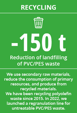 The bottom layer of floor coverings contains up to 80 % of regranulates generated from reworking internal technological remainders, which helps to close the material cycle of these products.